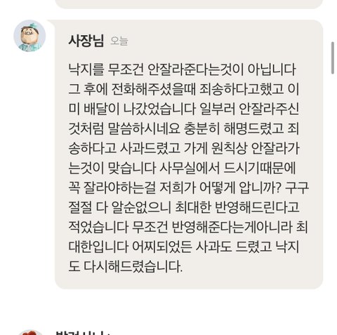 1번 답변에서 사장님 답변을 보고 마음이 속상했습니다.