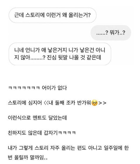 갓 태어난 조카 사진 스토리에 올렸는데 그런거 왜 올리녜
