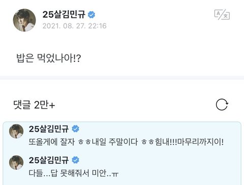 사랑둥이네....사랑을 돌돌 뭉쳐놓으면 그냥 민규일 것 같음...ㅠㅠ
