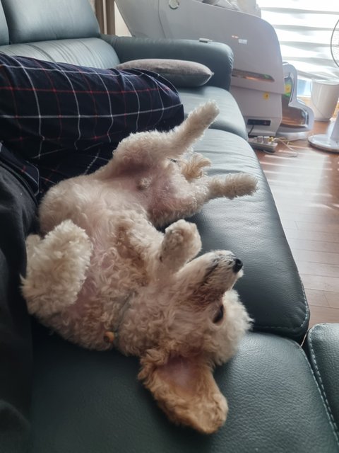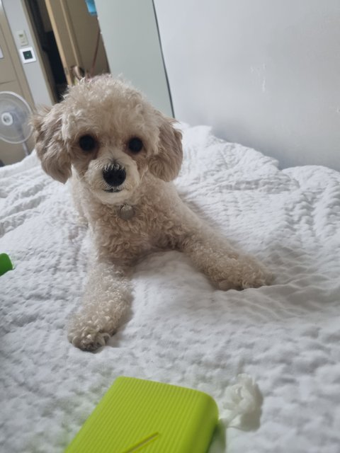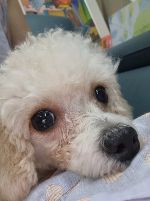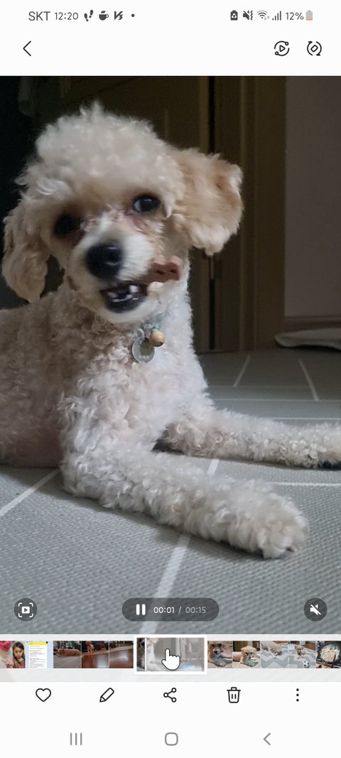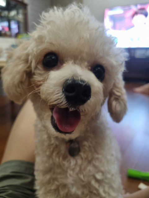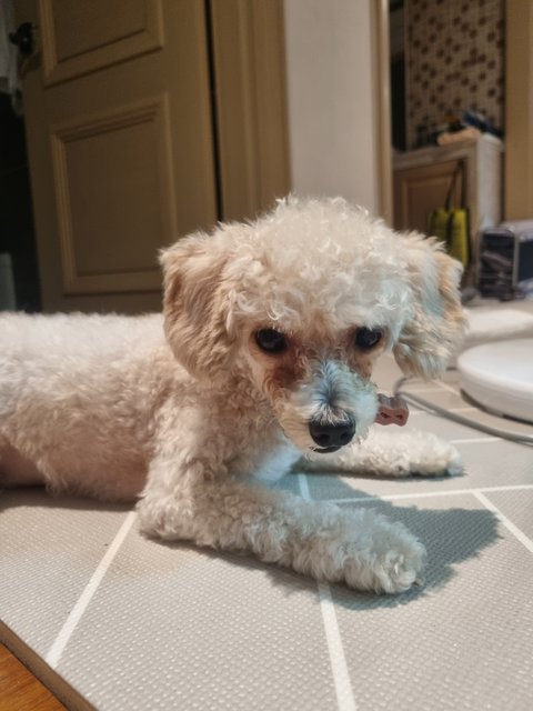 특징: 앞니 왼쪽이 갈색을 띄고 있음(치아 신경 손상), 치석 있음, 눈물 자국 있음, 크림색 반 곱슬 털, 눈물 자국 그리고 뿔려먹는 사료 때문에 눈가와 입가에 털이 지저분 합니다, 오른쪽 귀가 안좋아 귀를 파면 갈색 귀지가 나옵니다. 산책을 매우 좋아하고, 다음달에는 수술이 예약되어있어요.. 뒹구는걸 좋아해 크림색 털이 약간 지저분하게 엉켜 있습니다.
