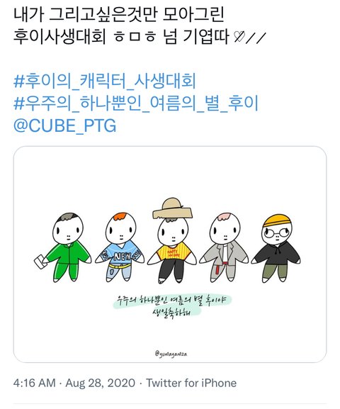 오해하지마 ㅋㅋ 나 해외팬 친구가 있는데 작년에 캐릭터 사생대회 대신에 후이사생이라고 검색을 하는거야. 내가 식껍(?)해서 알려줌 ㅋㅋㅋㅋㅋㅋ