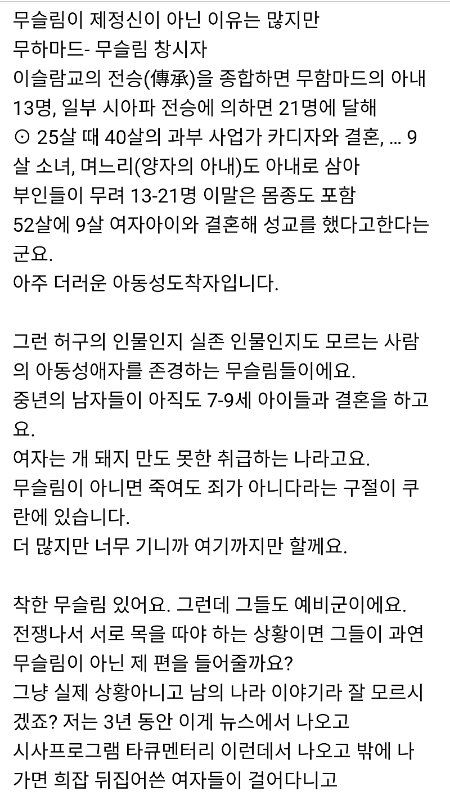 무슬림 실제로 겪어본 사람이 쓴 글이래 (fact 맘카페)
