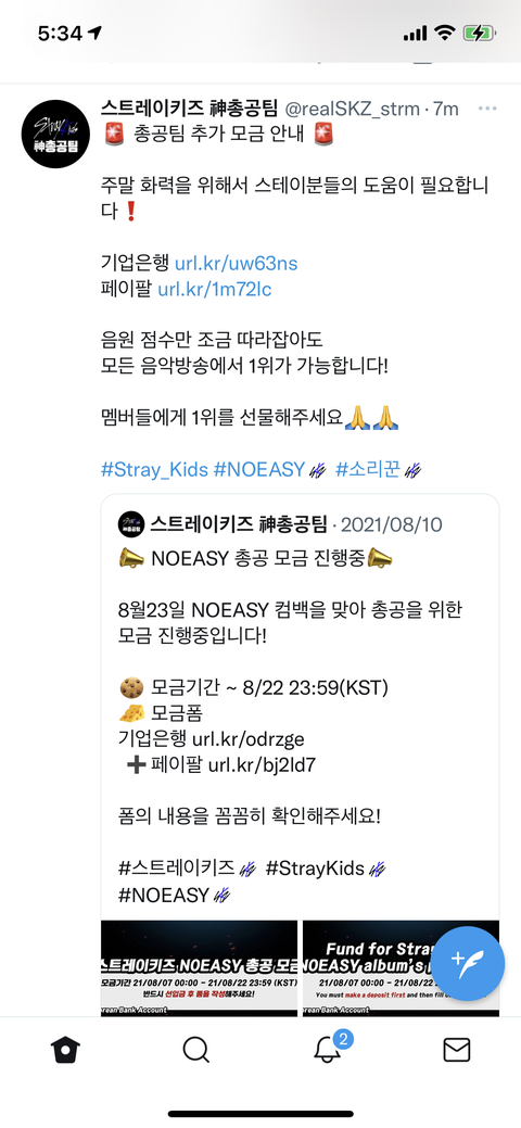 지금 총공팀에서 추가모금을 진행하고 있어!! 가능한 스테이들도 조금이라도 내면 큰 도움이 될 거야 ㅠㅠ 우리 애들 모든 음방에서 꼭 1위 시키자고!!