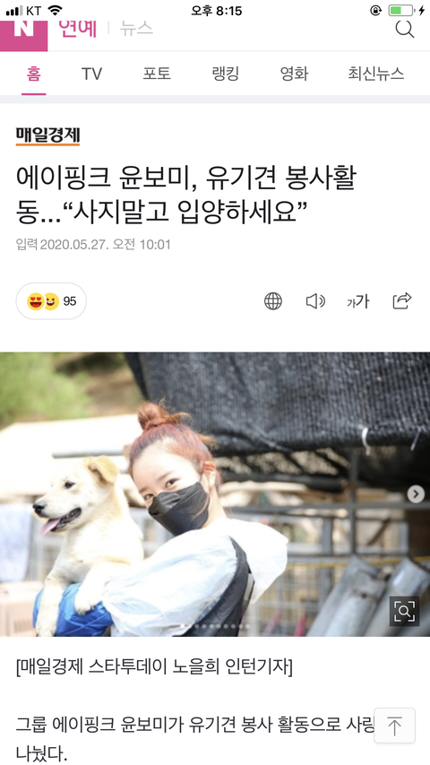 윤보미 진짜 착한듯 유기견 임시보호 자주 했었는데 결국 그중에 한마리 입양했네 거기다가 강아지 입양 인스타 팔로우 하고 사지말고 입양하라고 팬들한테도 소통으로 말하고 근데 보미는 강아지 알레르기 까지 있는데 약먹고 봉사활동 자주하고 그래서 괜찮아 진건가 ㅠㅠ