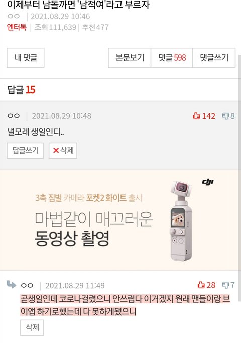 애들아 제발 정신 차려 스타쉽 고소 꾸준히 해 요즘 판에 선 넘는 글 많던데 외부 스태프랑 동선 겹친 거니까 ㅋㅋㅋㅋㅋㅋㅋㅋㅋ
