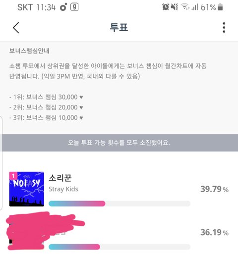 아챔 ㅡ쇼챔 아슬아슬한 1위ㅡ스밍하면서 투표