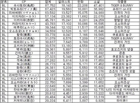 픽시브 커플링 전체 순위라는데 진격거는 다 리바이 있어서 뭔가 웃김ㅋㅋㅋㅋ 글고 리바에렌 진짜 많다...