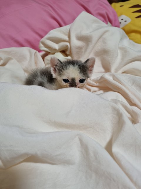 누군가 고양이 세마리를 검은봉지에 넣어서 다른집에 버리고 갔단다. 집에 데리고 오면 싫어 할 내가 있어서 애아빠가 몇날은 고민 하다 술을 잔뜩 먹고는 집에 떡하니 데리고 왔단다.상태를 보고 다음날 살아 있는지 몸을 만져 봤었다