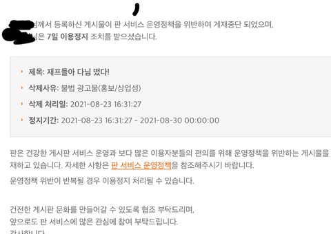 .. 일주일정지먹고옴