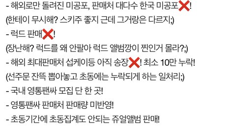 해외 판매 집계 늦춰져서 안된게 개빡침...