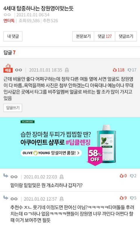 장원영 까여야됨X 다른여돌 까일때도 같은반응좀O
