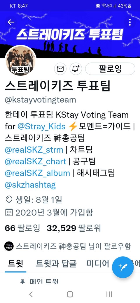 트위터에 스키즈 총공팀 꼭 팔로우 하긔~~♡거기에 투표방법 및 오늘 해야할 투표도 업로드 해준다구