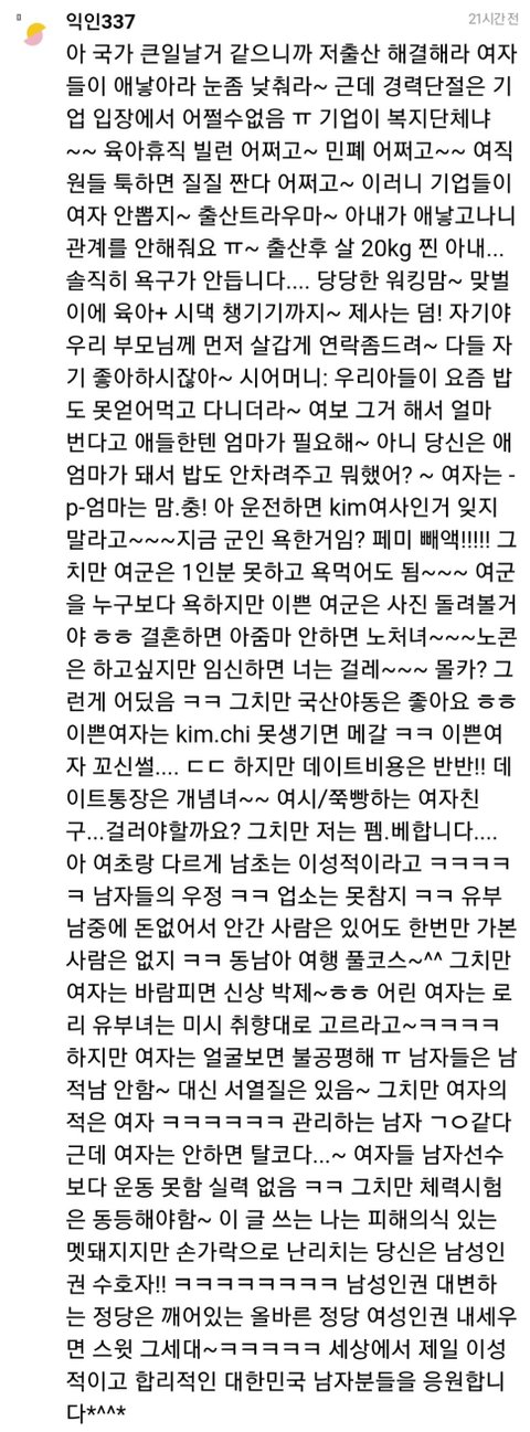 진짜 진심으로 궁금해서 묻는건데 한남들 한녀 엄청 싫어하잖아 그리고 결혼한다고 하면 취집 설거지 퐁퐁 온갖 얘기 다 나오고 전업해도 ...