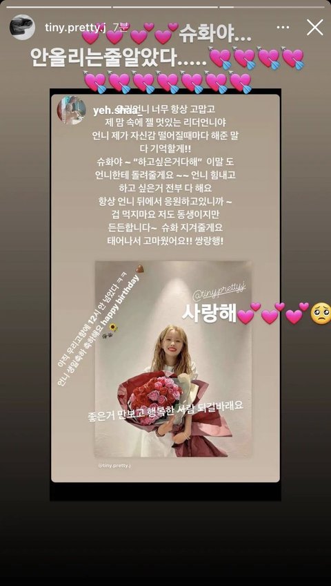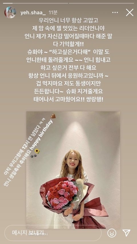 소연이 스토리에 축하하는 슈화 ㅠㅠ 나 눈물나