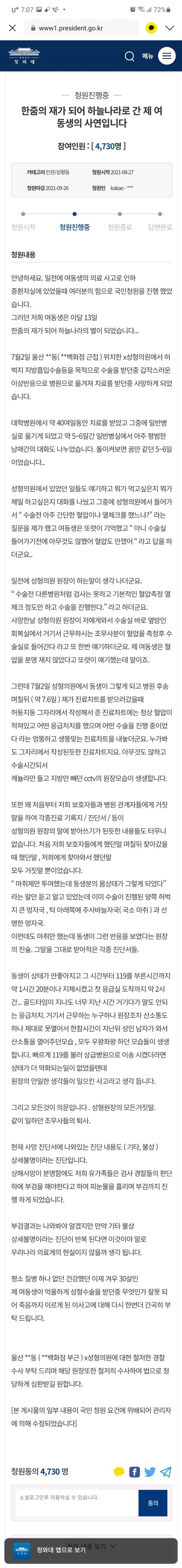 (꼭봐주세요)울산 의료사고ㅜ 청원 동의 한번만 해주세요ㅜ