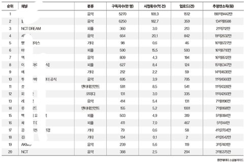 엔시티 드림 2021 대한민국 파워 유튜버 100 연예인부문 3위래!!