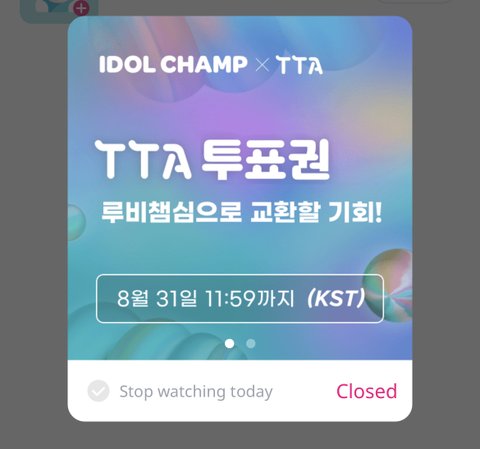 아래도 넣었는데 아챔에서 tta 투표권 8월 31알 11시 59분까지 받는다고 떴어.