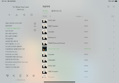 스밍리스트대로 듣는데 한 곡 넘어갈때마다 너무 좋아서 이걸 내가 듣고 있다는 것조차 너무 좋음 그리고 들으면서 ㅇㅌ 댓도 보고 서수 댓도 보는데 그냥 눈물 주르륵ㅜㅜ 노래가 좋아서 울어본 것도 오랜만이네… 사실 이걸 내가 그하때 느낌 ㅋㅋㅋㅋ 스밍 놓지말고 낼 10위권 가자!!!