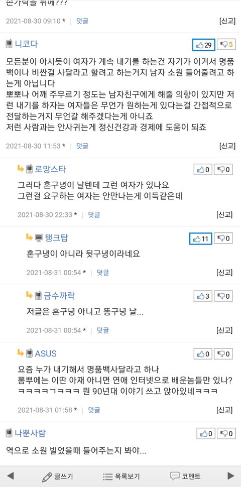 여혐 커뮤니티 베플 근황