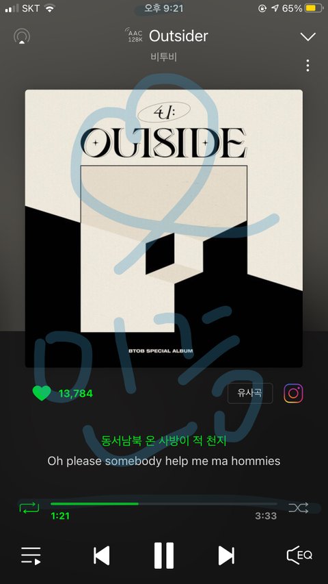 옆집에서 왔어요!! 늦었지만 킹덤도 정말 재밌게 봤어요 !! waiting 4 u 계속 듣고 있는데 너무 좋아요 ㅎㅎ