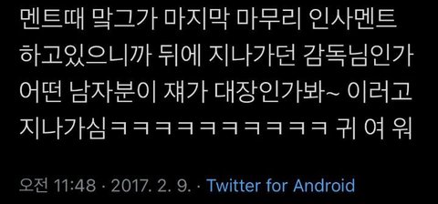 감독님인가 뒤에 지나가시던 분이 드림애기들 봤는데 누가 리더역할하길래 쟤가 대장인가봐~ 해서