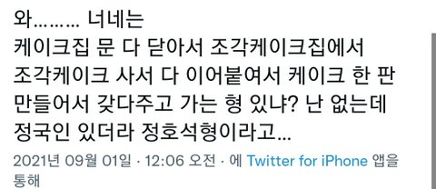 제이홉 조각케이크 사서 이어 붙였대..