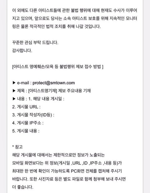 선넘는 악플들 싹 다 protect@smtown.com 으로 보내