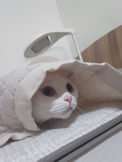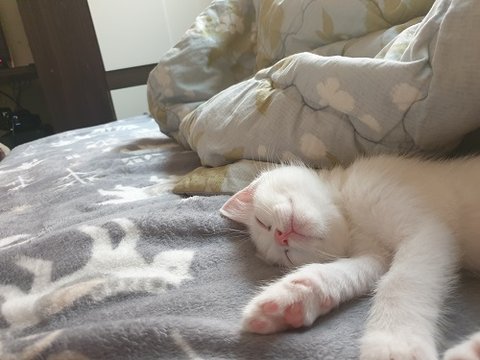 분양 받아서 집에 온지 하루만에 모든 적응을 끝내고 침대를 차지한 모습 입니다.