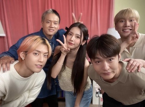 미연이 진행하는 소문의 아이들에 비투비 나와서 같이 사진 찍은 거 :) ! 같은 소속사 선 후배 사이인데 저렇게 잘 지내는 거 보니까 훈훈해