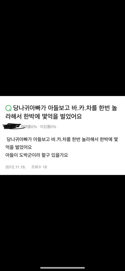 내가 우리 아빠 네이버 계정을 써 근데 지식인에 내가 영화를 물어보려고 올렸거든? 답변 올라왔나해서 지식인을 들어갔는데 내가 질문한 적 없는 게 올라와 있는 거야