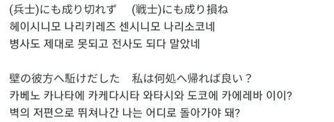 전사로써 어쩔 수 없었다고 합리화를 해보지만 병사와 전사 사이에서 혼란스러워 함