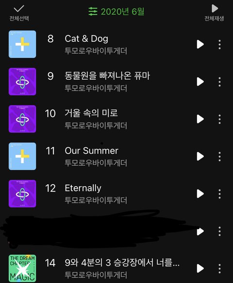 근데 멜론 내 차트 시간 거슬러 올라가니까 20년 1월부터 943이 차트에 있고 3월에 블오에랑 어머뿔 있고 5월에 세불밤 6월에는 걍 차트 상위권이 다 투바투야…ㅋㅋㅋㅋㅋㅋ 이렇게 간잽하다가 여름부터 제대로 덕질 시작했었나봄..신기하다