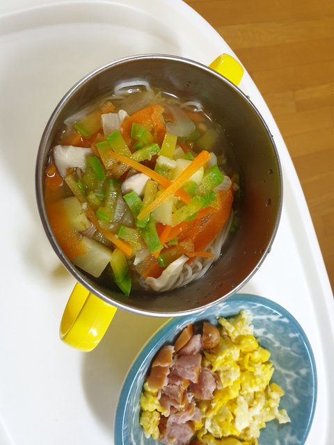 잔치국수, 아기소세지, 스크램블드에그