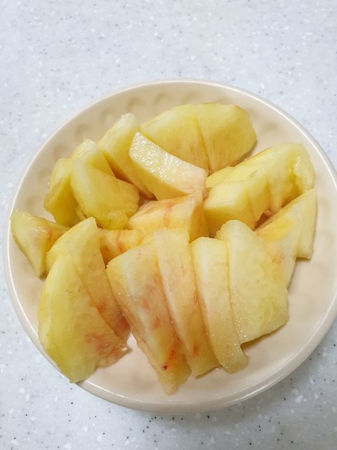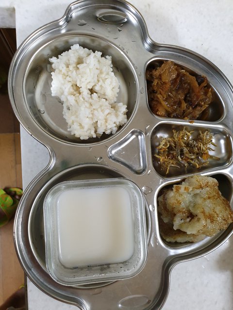 들기름김치찜, 멸치, 감자전, 곰국, 복숭아