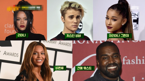 리한나, 저스틴비버, 아리아나 그란데, 비욘세, 칸예 웨스트라고 적은 CL