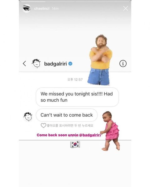아마도 리한나랑 씨엘 둘 다 친분있는