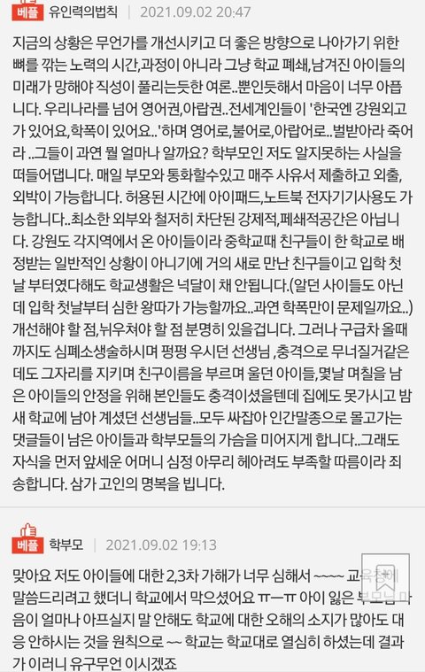 아직도 정신못차리고 피해아이도 가해아이도 모두 다 저희아이들이라는 강원외고학부모 박제