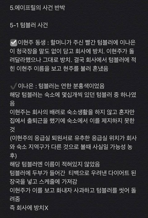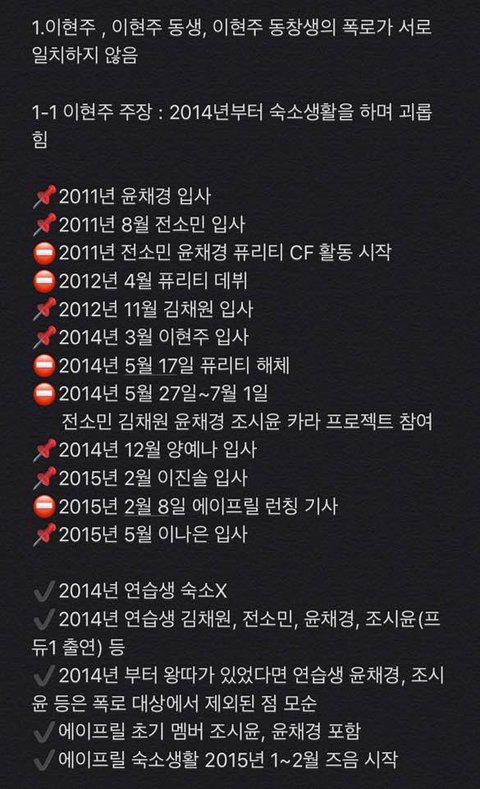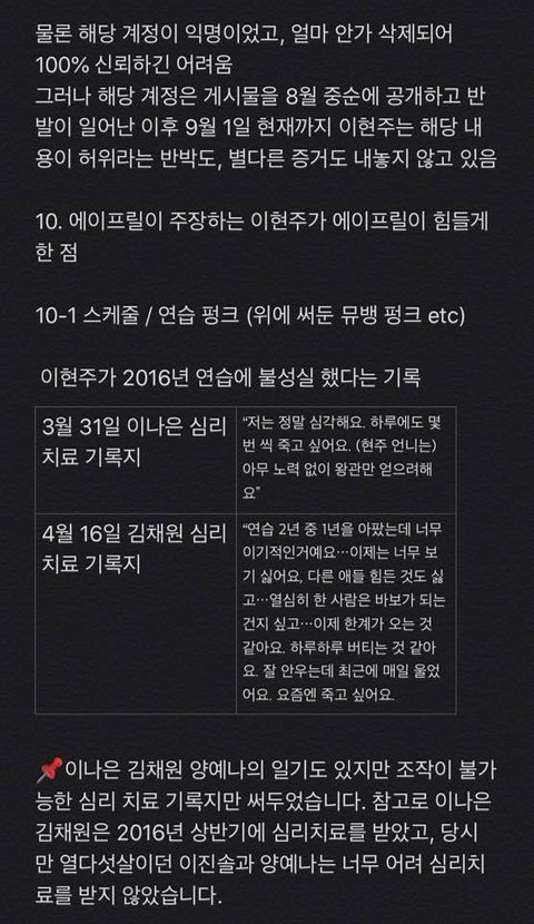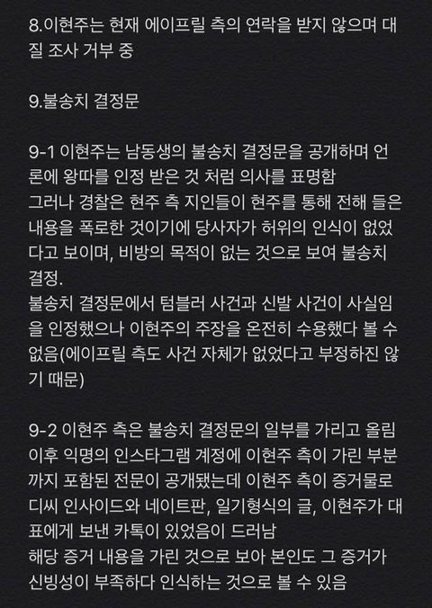 에이프릴 측에서 반박하거나 언급하지 않은 사건과 일들은 이현주 측에서 해명할 필요가 없어서 글에 없습니다