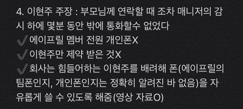 ※이현주와 에이프릴 측의 입장이 맞지 않아 이현주의 설명이 필요한 부분만 정리한 글입니다