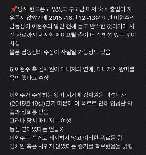 이 부분이 이현주가 입장을 표명해야할 가장 큰 이유라고 생각함. 김채원은 이와 같은 루머에 엄청난 성희롱과 악플에 시달려야 했음