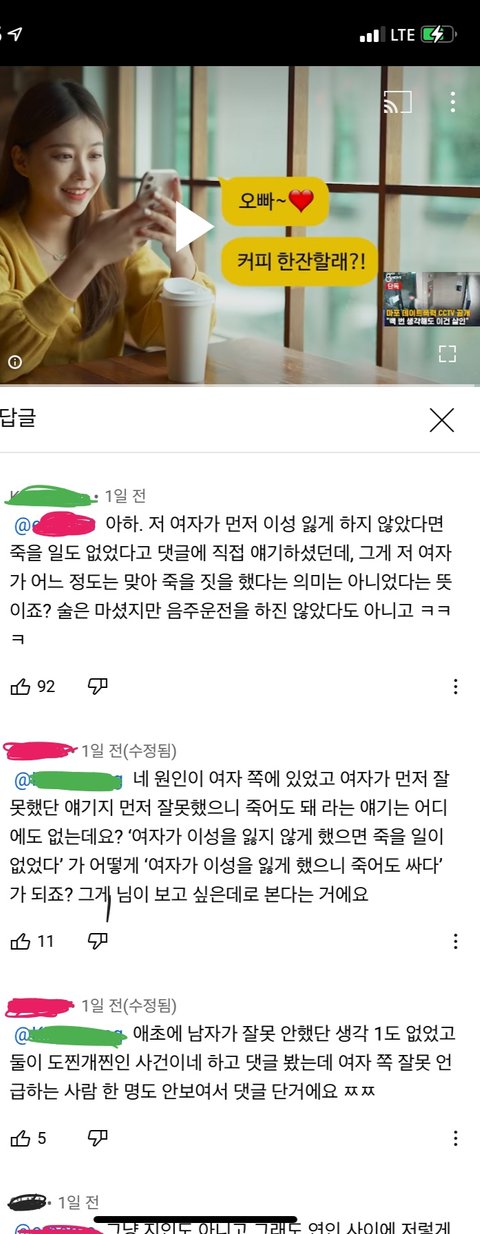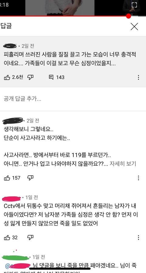 유X브에서 그 뉴스를 보고 댓글들을 읽다가 대댓글이 143개가 달린 댓글을 발견했어요