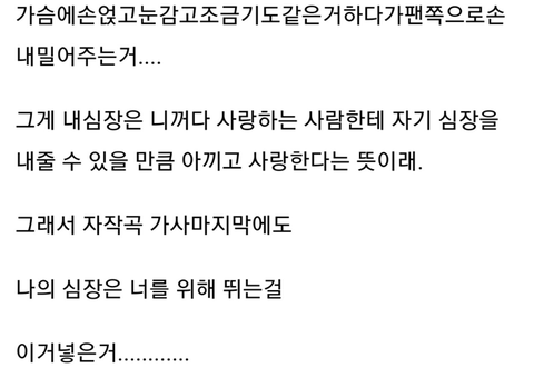 가슴에 손 얹기 전에 한참을 팬들 바라보다가