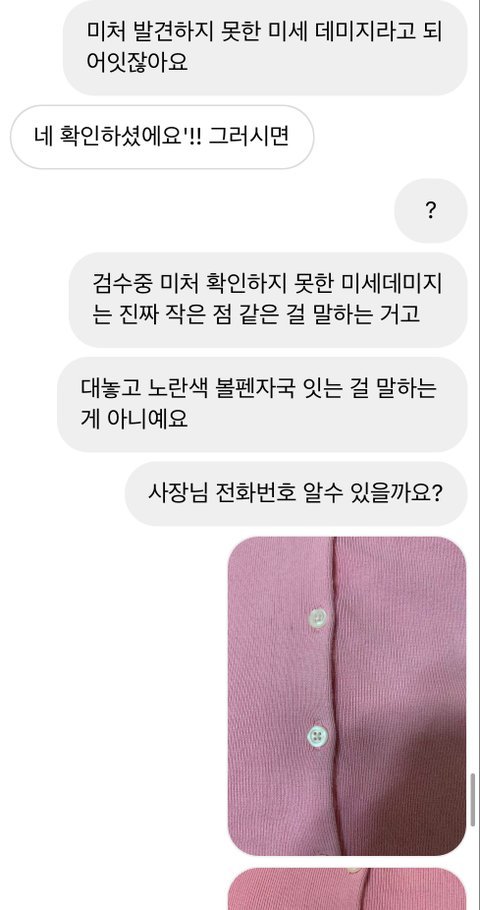 안녕하세요 제가 인스타 빈티지샵에서 사기를 당해서 이런 분들이 더 있으실까 싶어서 글을 올려봅니다ㅠ 일단 빈티지샵에서 제가 구입한 빈티지 제품은 핑크 폴로 가디건이였어요. 처음에 상품에 아무 이염 없고 하자 없다고해서 샀는데 어제 택배를 받아보니 이염이 엄청 심하고 담배냄새도 심하더라구요.(밑에 이염 사진 첨부)