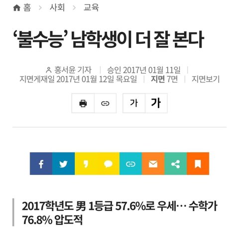 -행정고시 수석은 여자가 많이 했을땐 여풍이니 남성을 압도한다느니 메인기사를 장식하는데 남성이 최연소,수석 거의 다 차지할땐 전혀 이슈화 하지 않음. 그리고 원래 소수점 차이로 결정되는 이런 시험에서 수석같은거야 매년 남,녀 뒤바뀜.