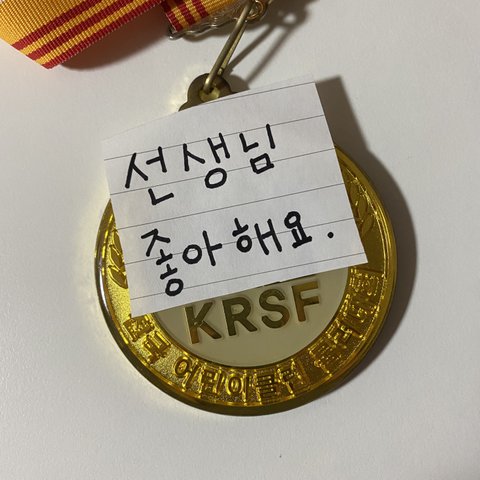 오늘 어머님 카톡으로 연락와서 꼭 주고싶은게 있는데 잠깐 만나달라고 해서 직접 집앞까지 와서 자기가 아낀다는 메달이랑 쪽지 주고갔음..ㅜㅜㅜ