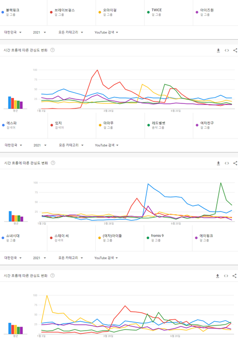 2021년 여자아이돌그룹 유튜브 검색량 TOP15