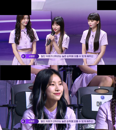 서영은은 2위, 윤지아는 마지막 순위만 남겨두고 이름이 아직 불리지 않았음