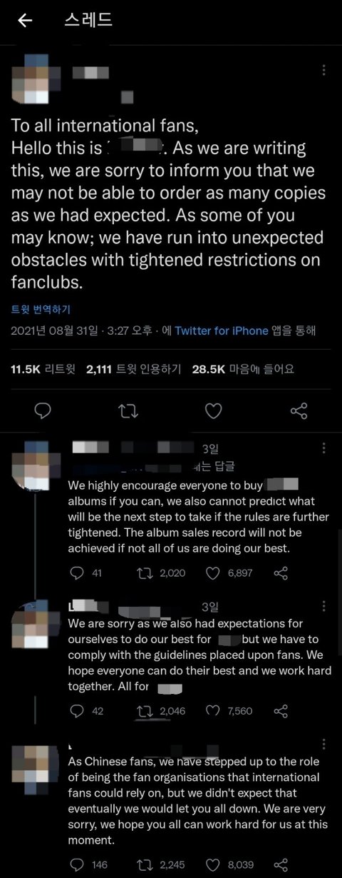 요약하자면 중국 규제로 인해서 예상한 수량만큼 못구매한다 앨범 기록을 위해 전세계팬들이 많이 사라 이거얌