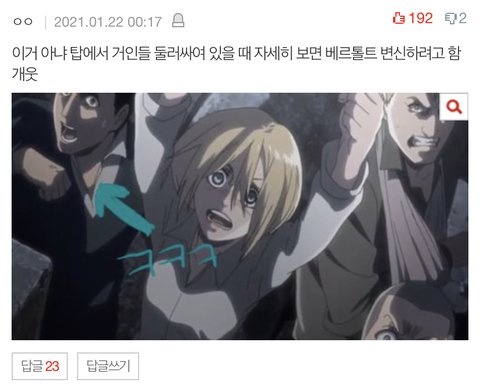아 그리고 패트와 매트 사진 ㄴ있고 베르톨트! 아아- 라이너! 하는 짤 있냐 그게 ㅈㄴ 웃긴데