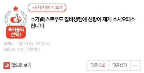 엥 아이스크림 초코라고하면 아이스크림 한개, 초코맛이라 생각하지 누가 바닐라 하나, 초코 하나라고 생각함???내가 이상한건가???-_-암튼 나라도 알바생 놈인지 년인지 저러면 빡칠듯. 아이스크림 던진건 과하지만 쓰니가 딱히 막 이렇게 반대먹으며 욕먹을 일인가 싶음 쓰니욕하는 사람들 중에 면전에서 비아냥당하고도 얌전히 있을 사람 진짜 과연몇일까. 다들 분노조절잘하는척 하여튼 판 보면 가식스런 베댓들 많어ㅋㅋ